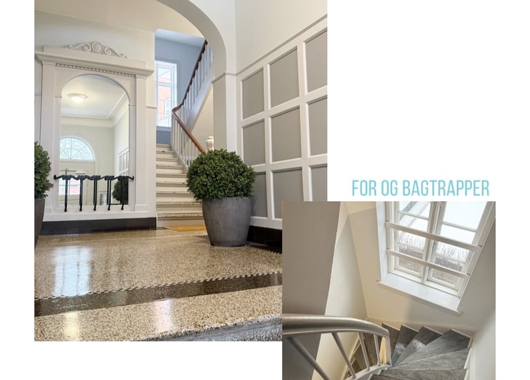 Trappevask, hovedrengøring, kontorrengøring, vinduespolering, udendørs renhold, affaldshåndtering, flytterengøring og løbende vedligehold